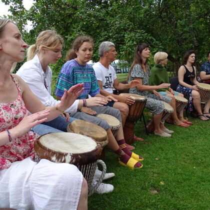 Perkusiju plenērs – tā ir neaizmirstama nedēļa, kuras laikā runājam ritma un mūzikas valodā. Kopīga muzicēšana ir lieliska sarunas valoda, kas spēj vienot kā draugus, tā pavisam šķietami svešiniekus, kuri jau pēc vienas kopīgi pavadītas nedēļas muzicējot, spēj kļūt par pavisam tuviem draugiem. Nav nozīmes tam, vai esi profesionāls mūziķis un tā ir tava ikdiena, vai ir tikai prātā ienācis kādreiz pamēģināt – šeit visi ir ļoti gaidīti un katram ir iespēja atklāt un izzināt sevi no jauna. Plenērā mēs esam kā viena liela ģimene un reizēm liels ir bijis jaunpienācēju pārsteigums par to, ka vienkopus var sapulcēties tik pozitīvi ļaudis un Tu pat nepamani, ka vienā mirklī kļūsti viens no viņiem – viens no šī draudzīgā kodoliņa. Tiek aicināti visi (bērni gan kopā ar vecākiem), kam ir tuvs ritms, muzicēšana, būšana kopā ar burvīgiem cilvēkiem. Tev nav obligāti jāmāk spēlēt kāds mūzikas instruments! Ir aicināts jebkurš!