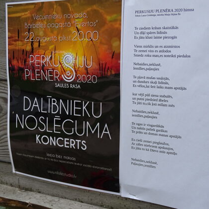 Esam dzirdējuši ieteikumus - jums PERKUSIJU PLENĒRS ir jāveido kā liels festivāls ar lielām ļaužu masām, bet tā kā šis ir mūsu sirds un brīvas gribas darbs, tad mēs tomēr pieturamies pie savas sākotnējās idejas – kaut uz vienu nedēļu radīt mazu, sirsnīgu, līdzīgi domājošu cilvēku kopienu, tā, lai esam visi kopā un tomēr arī viens otram, pavisam prom no pilsētas, svaigā un neskartā vidē, tādēļ -